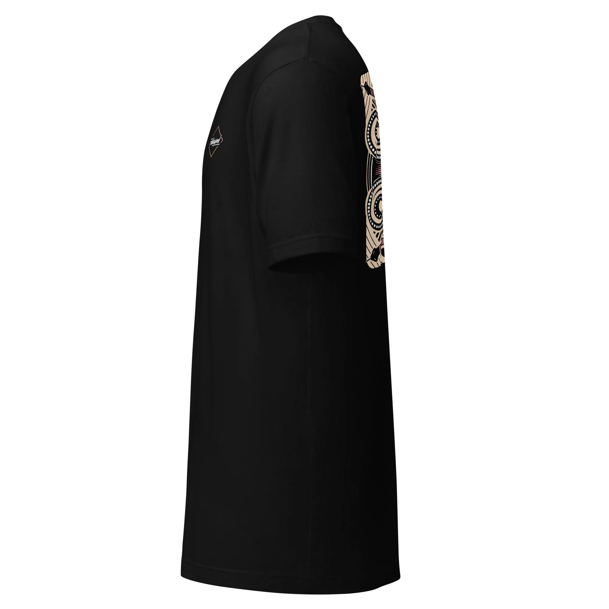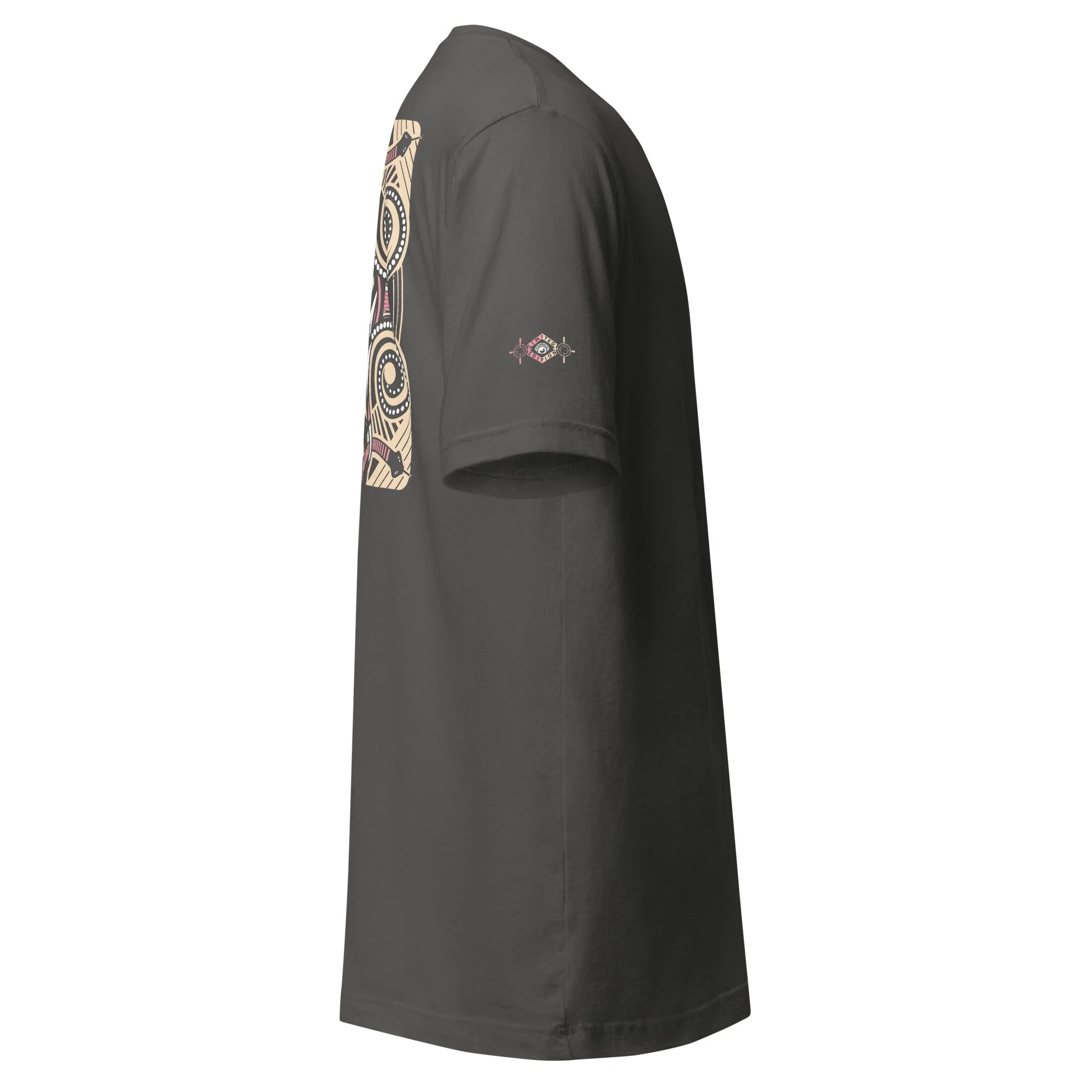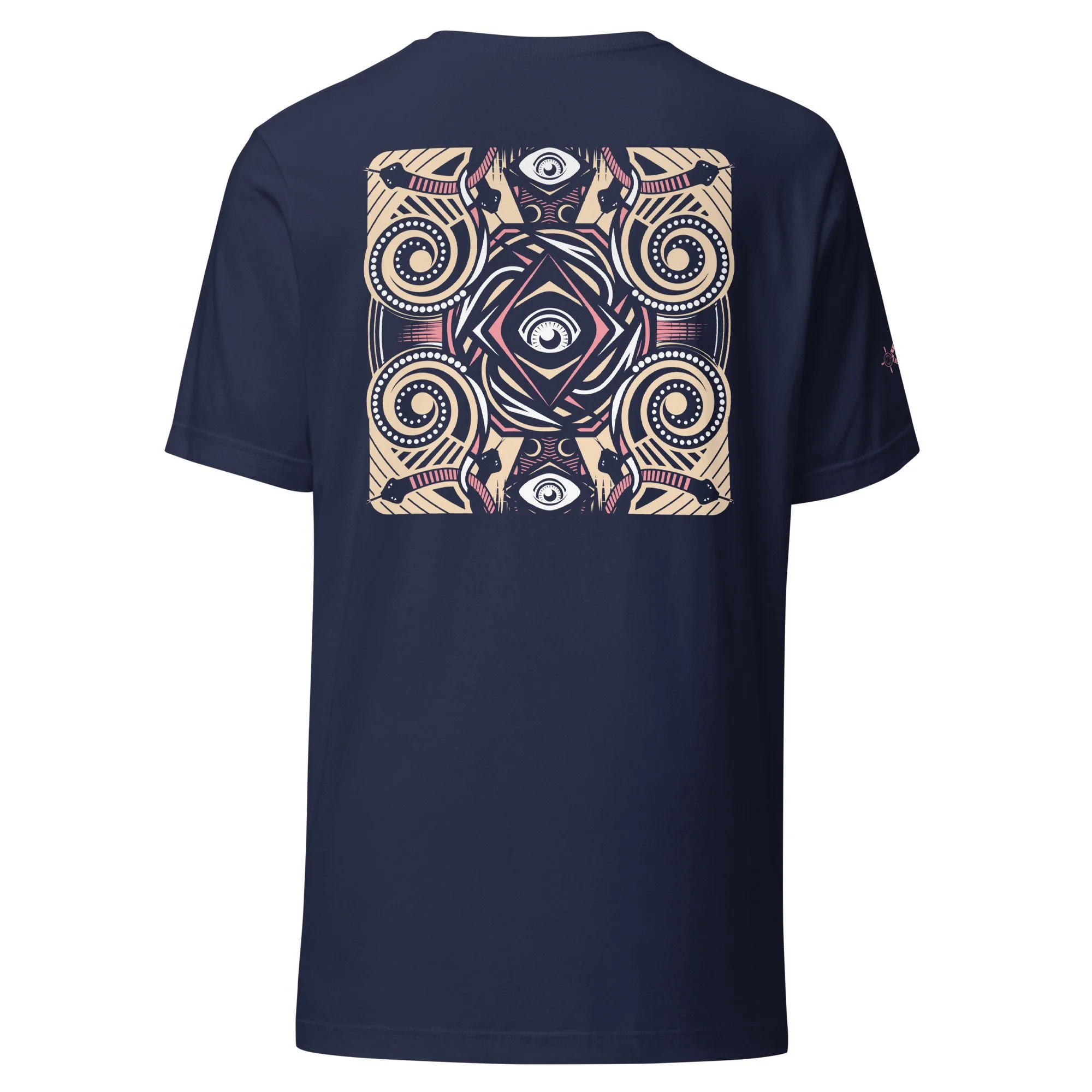 This design explores balance, symmetry, and awareness. A repeating form built around watchful eyes and circular rhythm. Influenced by ancestral pattern language and reinterpreted through a contemporary, graphic lens, the artwork reflects ideas of guardianship, perception, and connection. Printed as wearable art, this piece is less about statement and more about presence — something you carry rather than display.